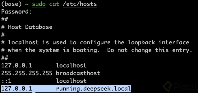 minikube tunnelel cual nos redirecciona las peticiones de nuestra máquina al ingress en el cluster. En este punto ya podemos entrar arunning.deepseek.localdesde nuestro navegador.