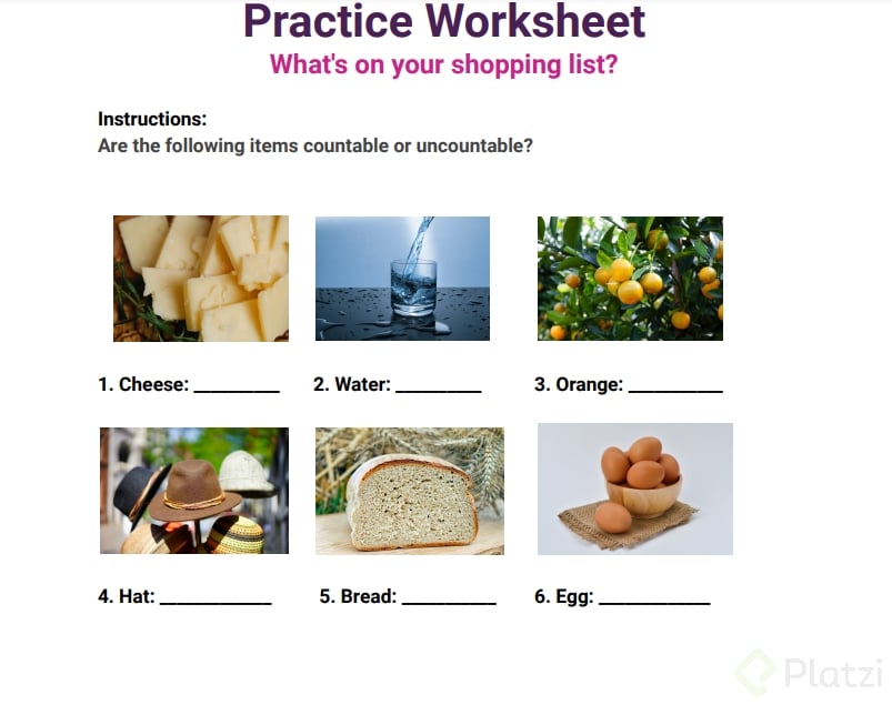 Uso de Sustantivos Contables e Incontables en la Lista de la Compra