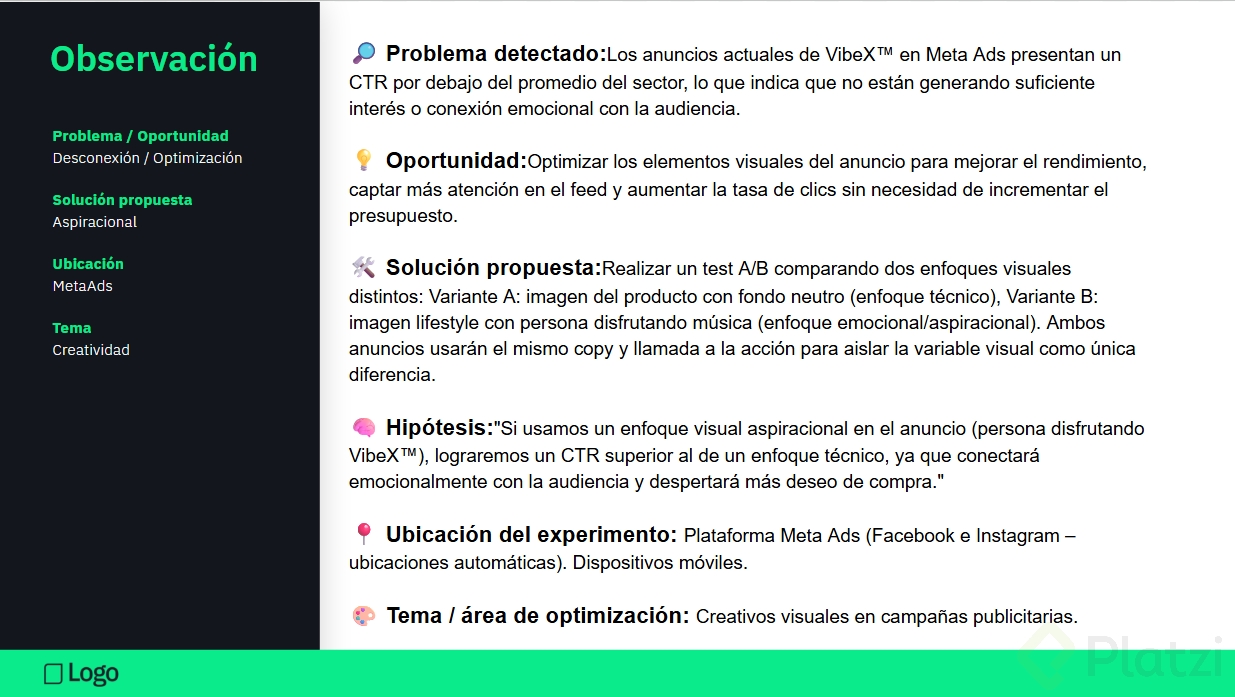 - Formulación de hipótesis: Asegúrate de que sean específicas, medibles y vinculadas a objetivos de negocio.