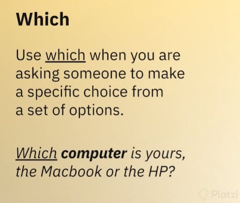 Usamos "cuál" cuando pedimos a alguien que escoja de entre un conjunto específico de opciones. Por ejemplo: