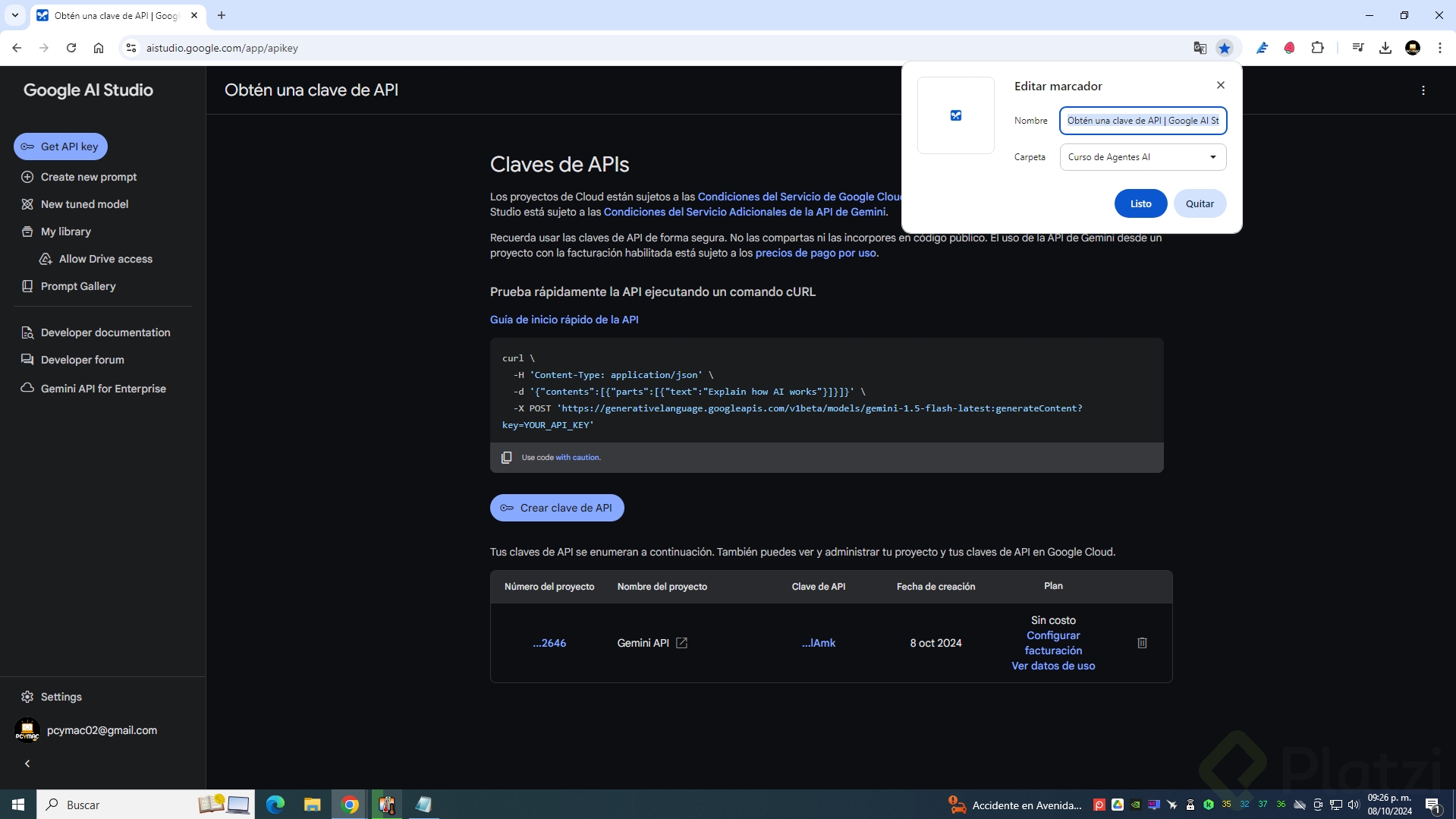 - Crear una cuenta en Google Cloud: Es el primer paso para solicitar un API Key.