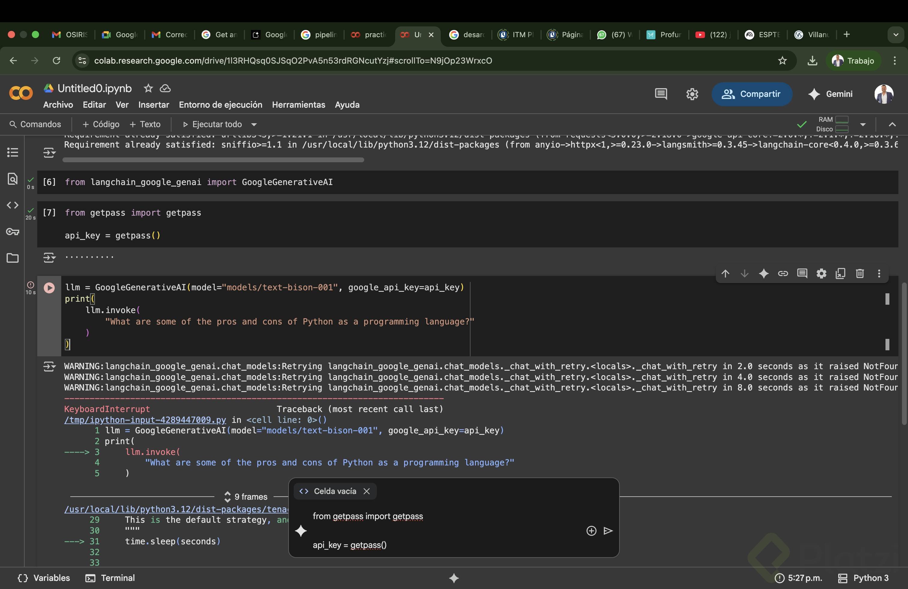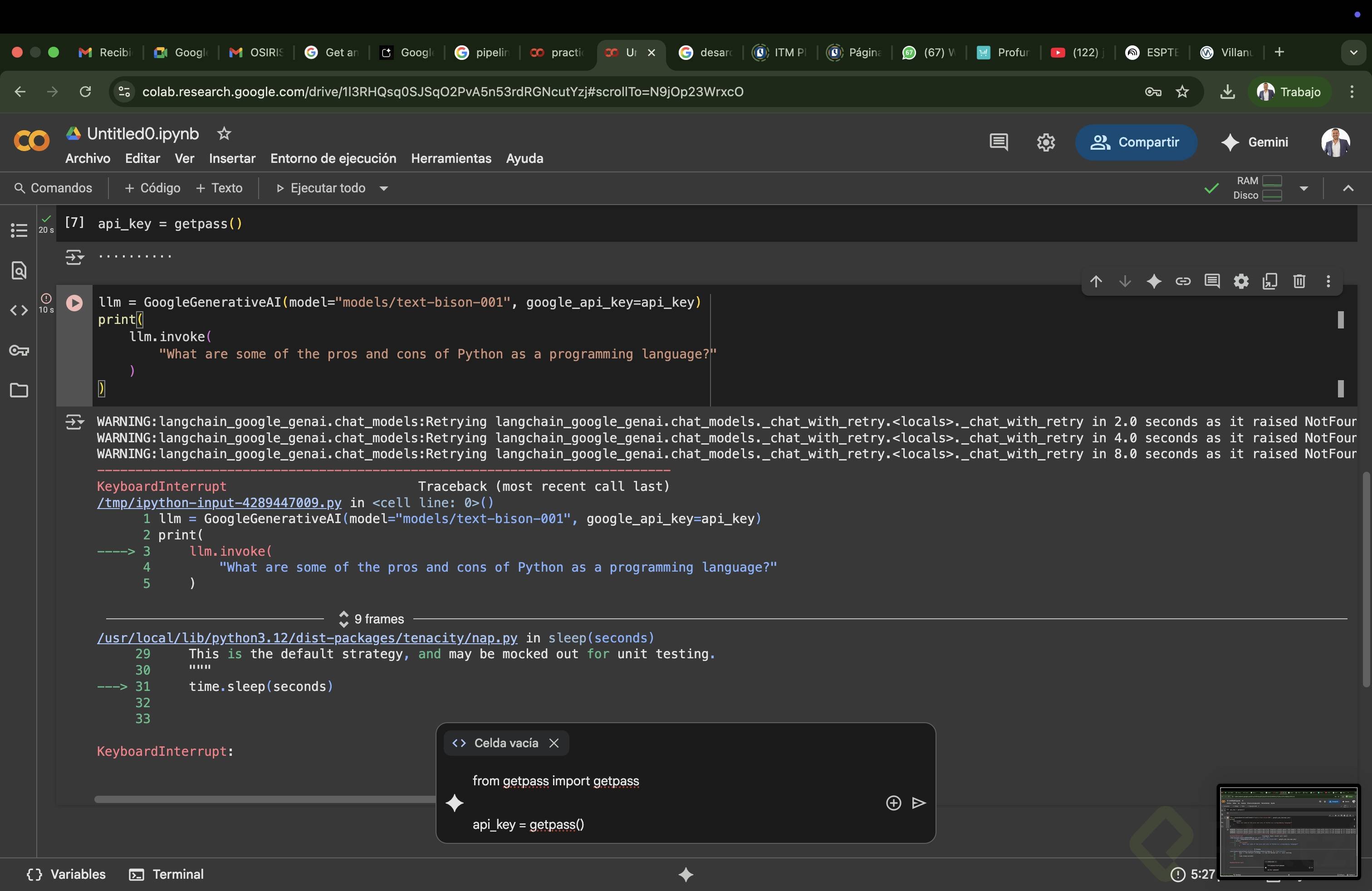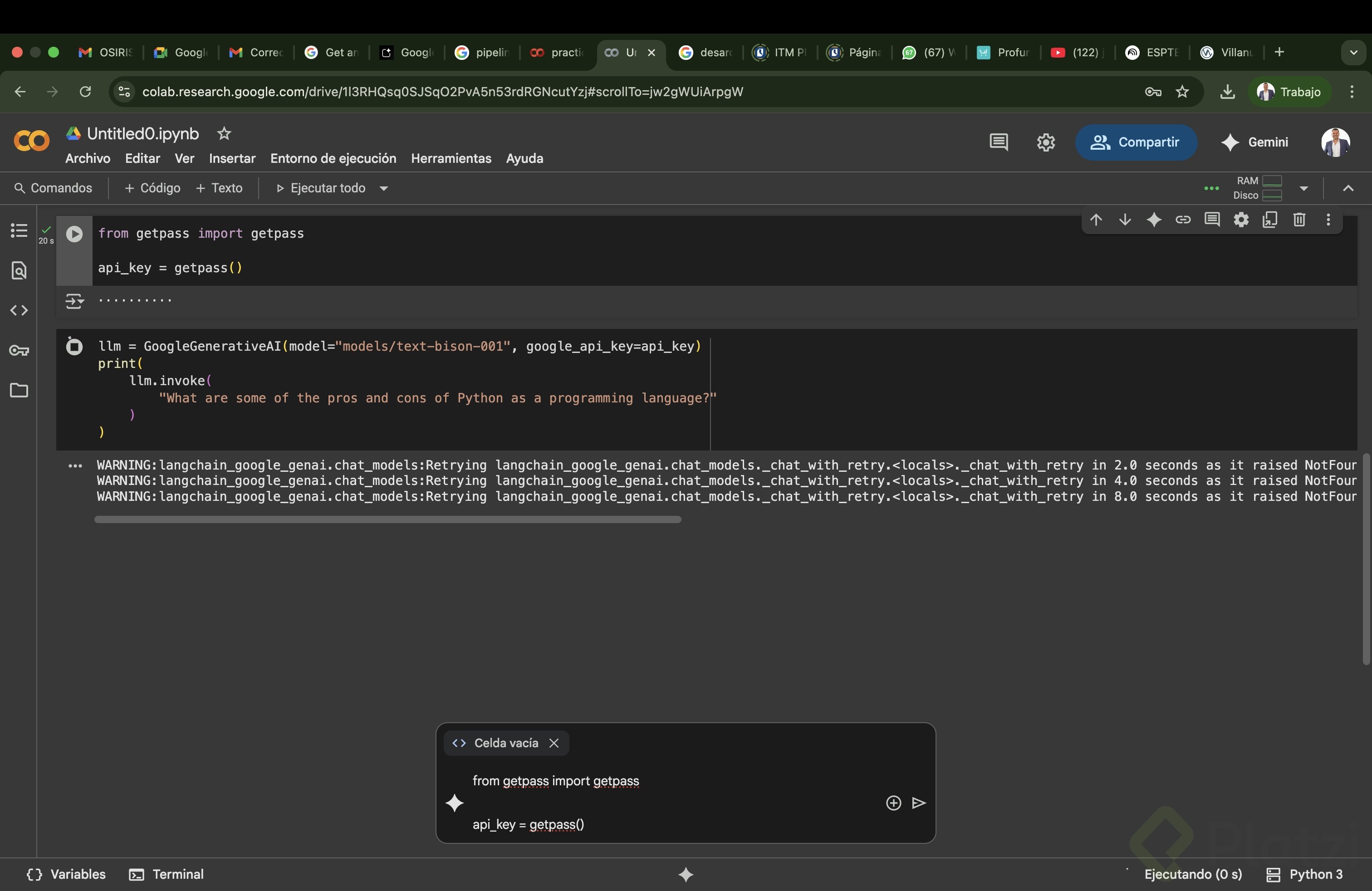 Instalación y uso de API Keys para modelos de lenguaje en Google Collab