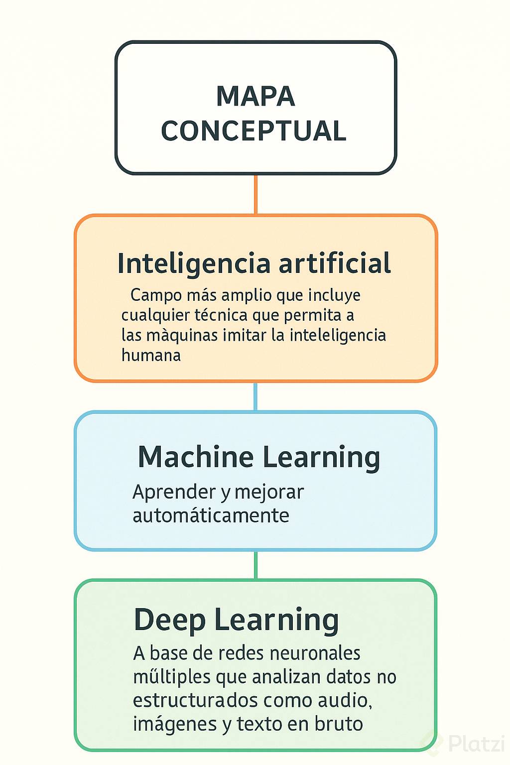 [0:32] Inteligencia Artificial: Campo más amplio que incluye cualquier técnica que permita a las máquinas imitar la inteligencia humana