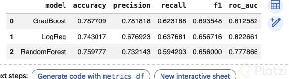 - Modelos comparados: 3 (Regresión Logística, Random Forest, Gradient Boosting)