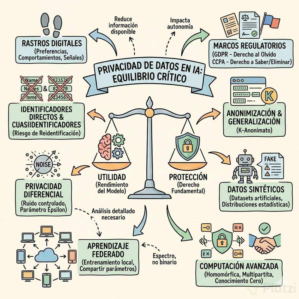 - Pensamiento crítico sobre trade-offs: Capacidad para evaluar el equilibrio entre privacidad y utilidad en diferentes contextos