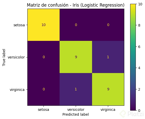 - [8:37] Predicciones correctas: setosa, versicolor, virginica (100% de acierto en datos de prueba)