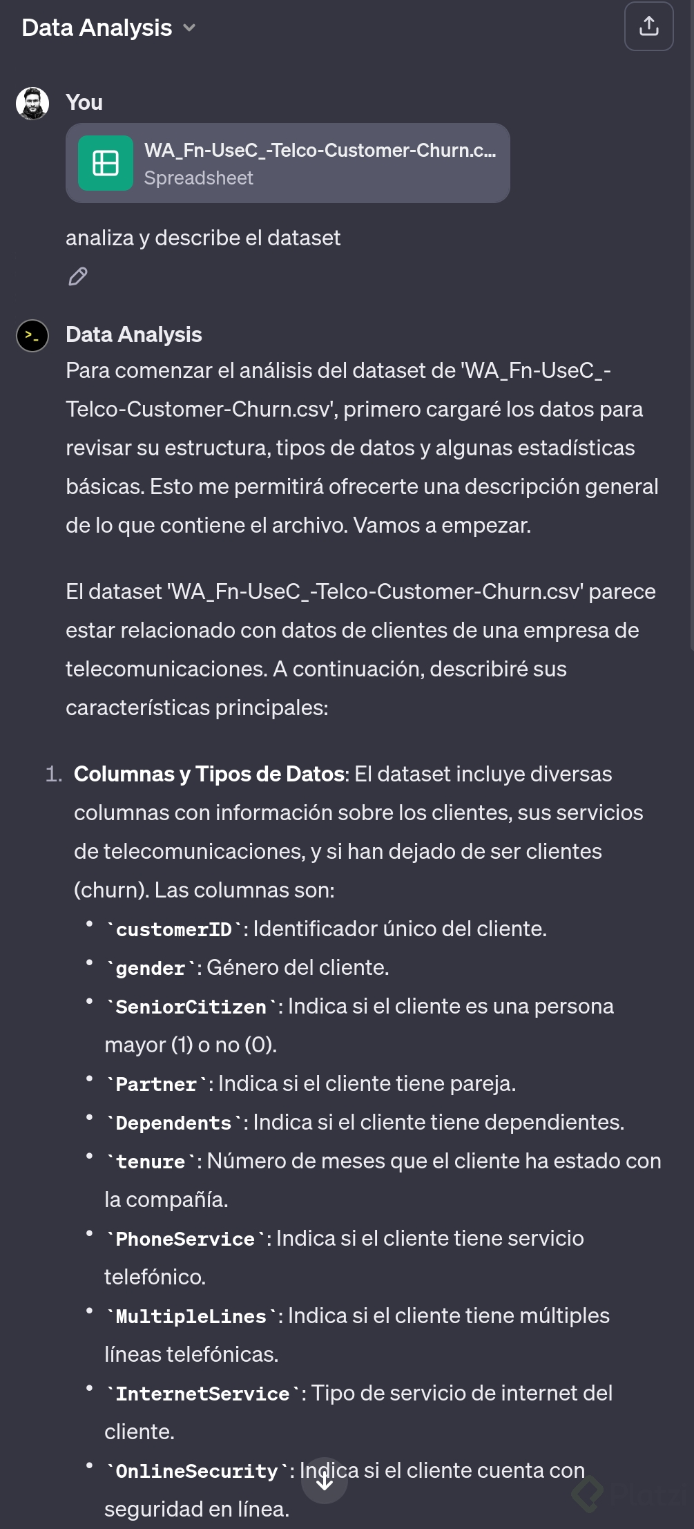 - Análisis de documentos: Ahora es posible cargar PDFs, archivos de Excel, CSV, documentos de Word y otros documentos para análisis, resúmenes o extracción de datos. Esta función, que debutó en el plan ChatGPT Enterprise, es un cambio significativo, que permite a los usuarios cargar PDFs, hojas de cálculo y otros documentos para una variedad de tareas.