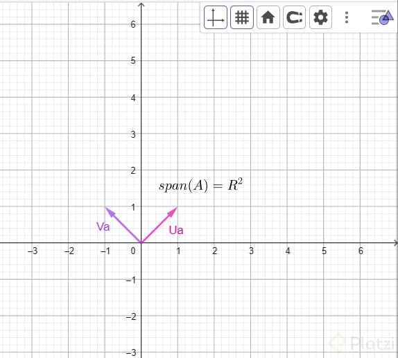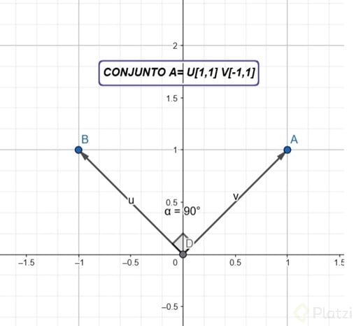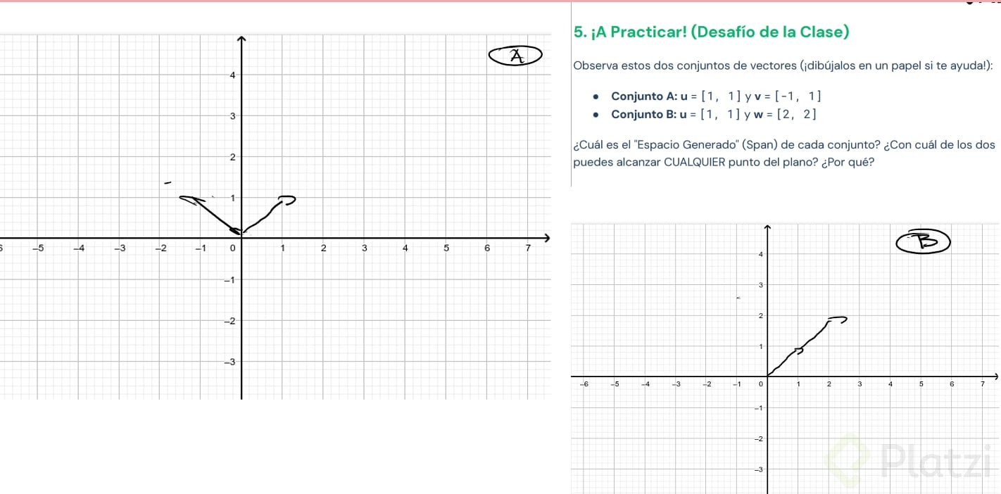 - Conjunto A: u = (1, 1), v = (−1, 1). Escribe su span y dibújalo.