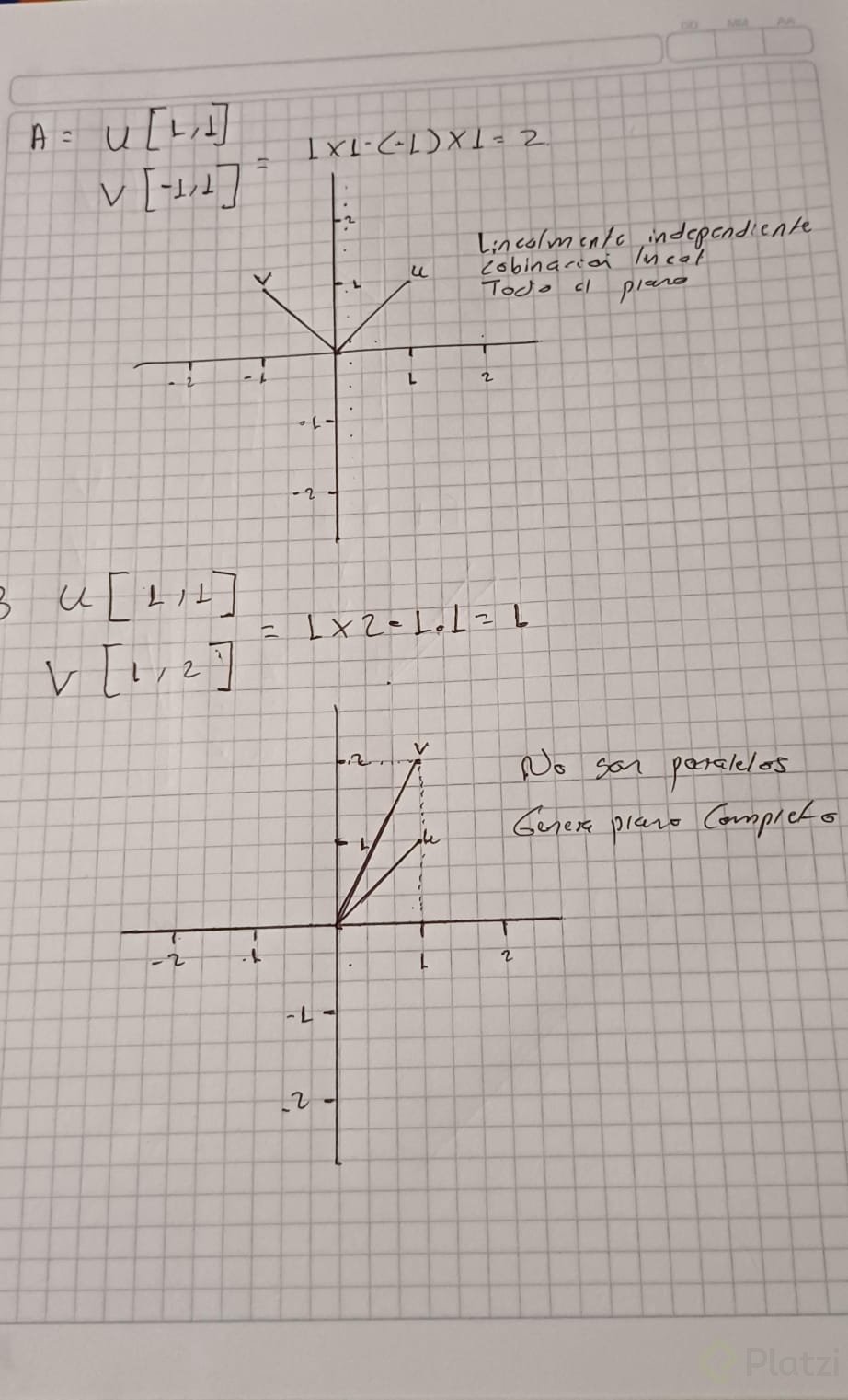 Habilidades y keywords: espacio generado, plano 2D, colineales, vector cero, redundancia.