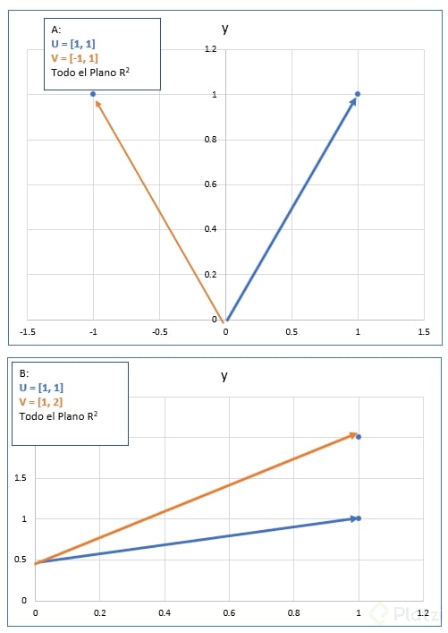 - Vectores en direcciones diferentes: el span es el plano 2D completo.