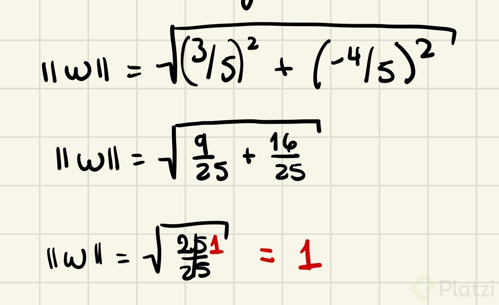 - Vector unitario: ŵ = (1/10)·(6, −8) = (3/5, −4/5). Su norma es 1.