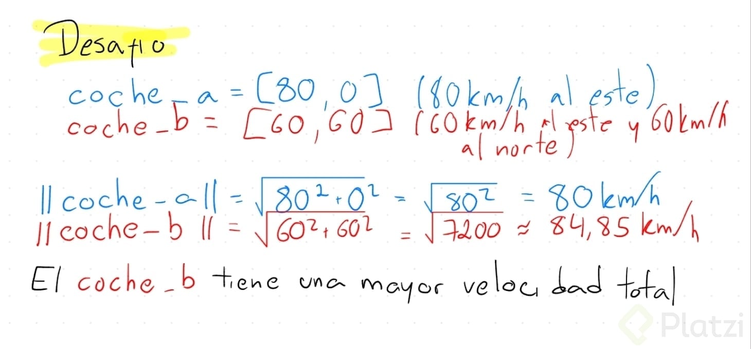 - Interpretación: la flecha del vector es la hipotenusa; su longitud es 5.