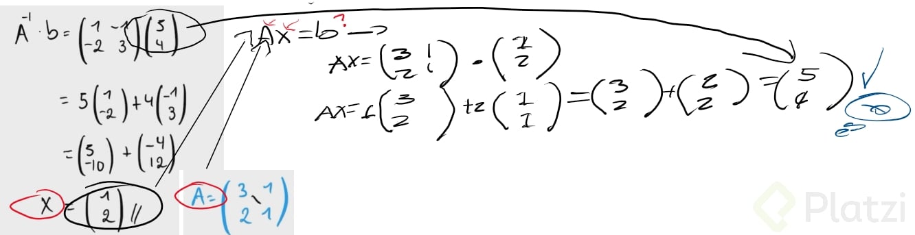 - Si det(A) = 0: no existe A⁻¹, la transformación pierde información y AX = B tiene infinitas soluciones o ninguna.