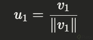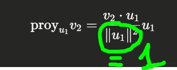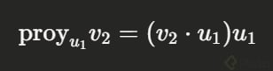 - Proyectamos v2 sobre u1: proy_{u1}(v2) = [(v2·u1)/(||u1||^2)] u1.