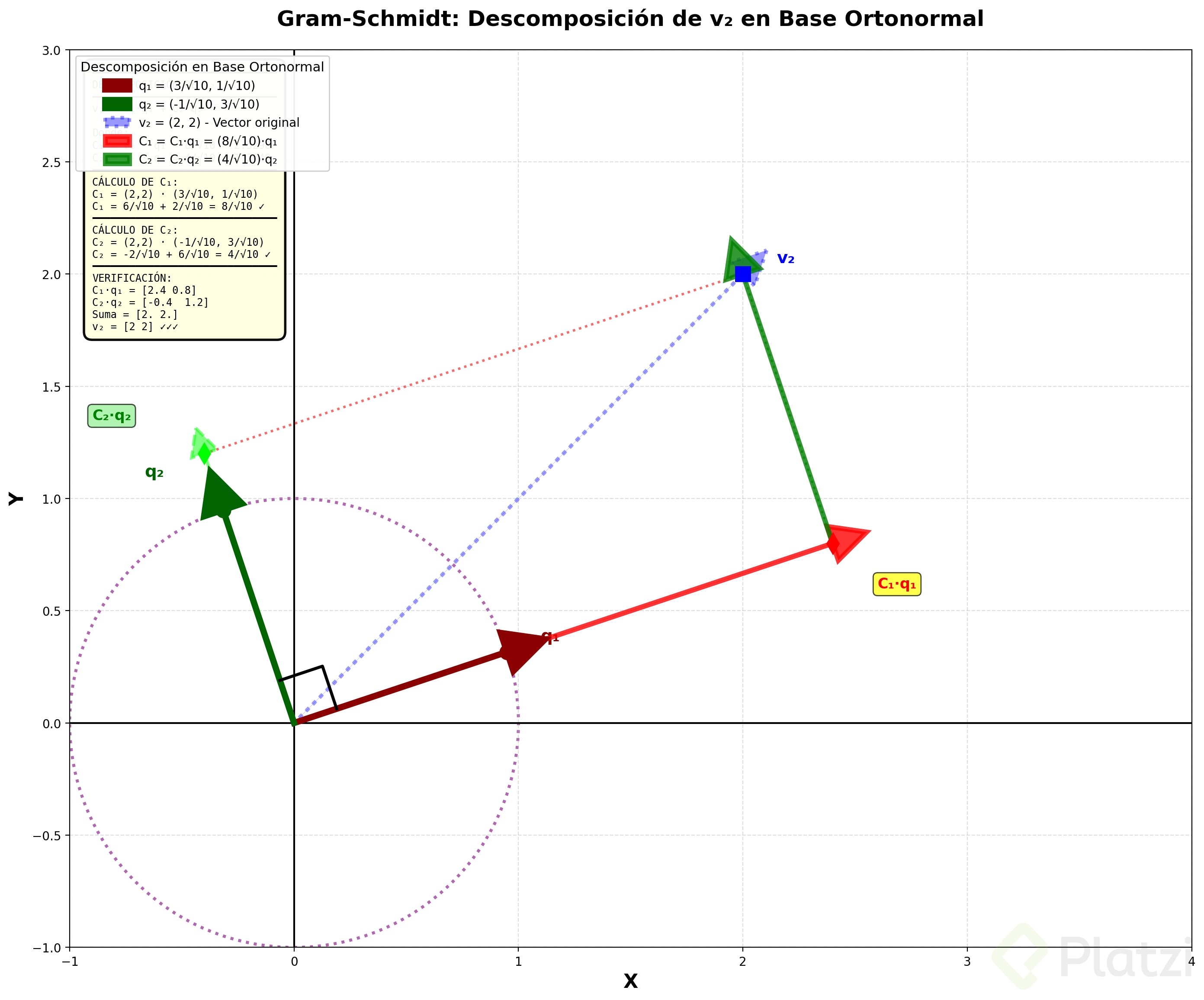 Domina el proceso de Gram-Schmidt con un ejemplo claro en R2 y transforma cualquier base “torcida” en una base ortonormal. Aquí verás cómo usar la proyección, el producto punto, la norma y la normalización para simplificar cálculos de coordenadas sin resolver sistemas de ecuaciones.