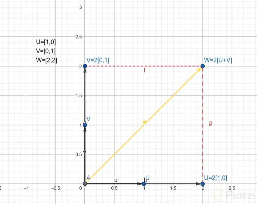 - Conjunto: U = (1,0), V = (0,1), W = (2,2).
