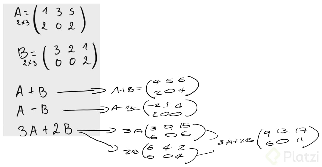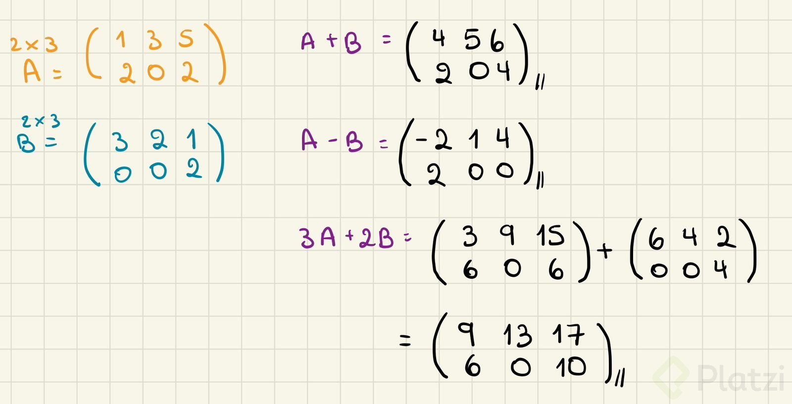 - tareas: calcula A + B, A − B y 3A + 2B.