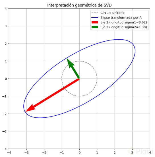 Prueba: cambia un número de la matriz A (por ejemplo, reemplaza el 2 por 3 en la primera fila), vuelve a ejecutar y describe en una frase cómo cambió la elipse: ¿se estiró, se encogió, rotó? Comparte tu resultado en los comentarios. Próxima sesión: usarás SVD para descomponer una imagen y reconstruirla con solo una fracción de los datos.