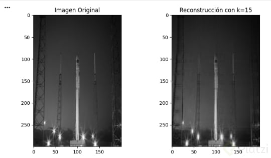 u, s, vt = np.linalg.svd(imagen)defreconstruir_con_k(k): u_k = u[:,:k] s_k = np.diag(s[:k]) vt_k = vt[:k,:] imagen_reconstruida = u_k @ s_k @ vt_k