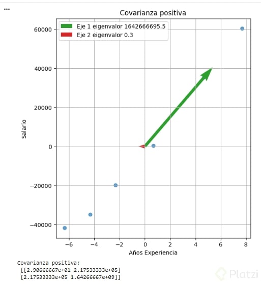 Esto conecta directo con PCA: si el primer eigenvalor es mucho mayor que el segundo, puedes proyectar los datos sobre el eje principal y reducir de 2D a 1D conservando casi toda la información.