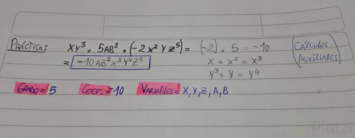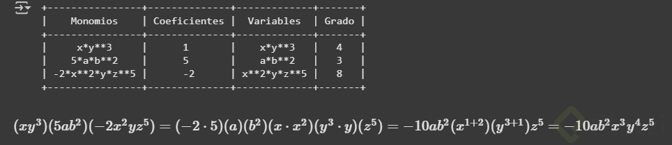 Para afianzar estos conceptos, es bueno resolver ejercicios prácticos, aplicando lo revisado a distintos casos específicos. Te invitamos a participar activamente en esta tarea: identifica coeficientes, variables y grados, y multiplica monomios para obtener su simplificación. Comparte tus respuestas y dudas para continuar creciendo juntos en este aprendizaje matemático.