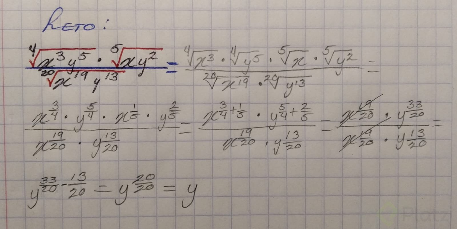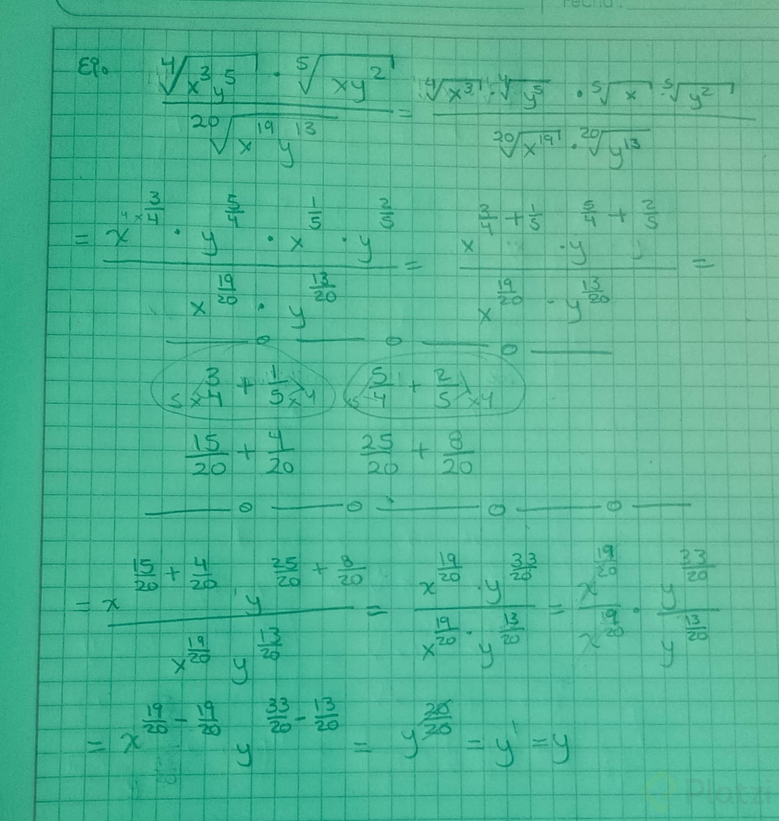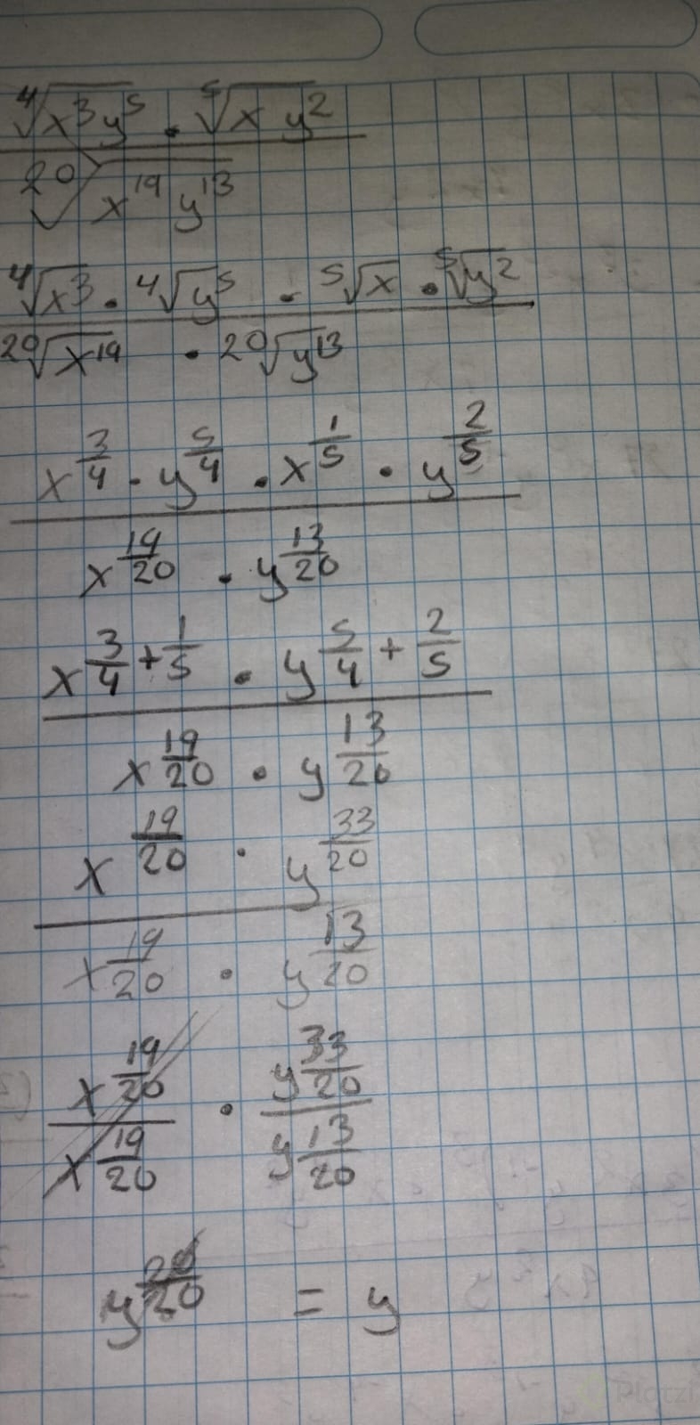 - [\frac{\sqrt[5]{x^3}\cdot\sqrt[5]{y^5}\cdot\sqrt[10]{x}\cdot\sqrt[10]{y^2}}{\sqrt[10]{x^{19}}\cdot\sqrt[10]{y^3}}]