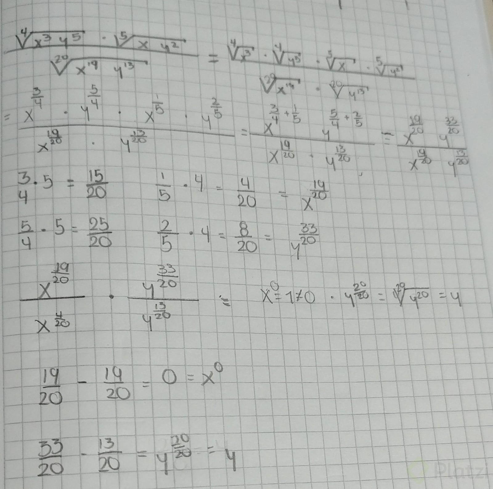 - División de raíz cuarta de x entre raíz cuarta de y:
