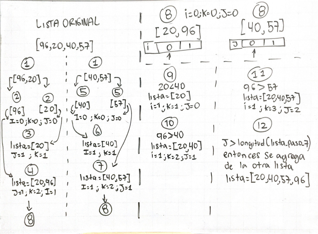 # Inicializamos los índices para las dos sublistas