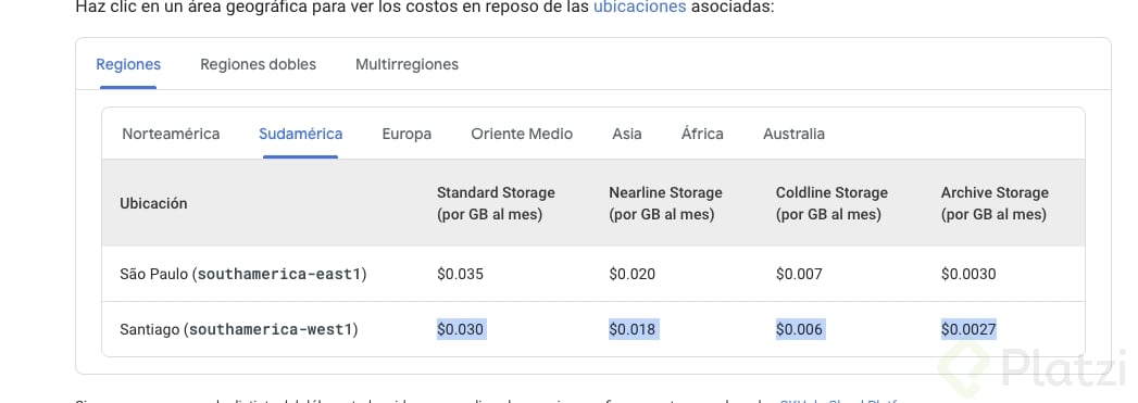 - Coldline es una opción más barata comparada con Nearline y apropiada para accesos más esporádicos.