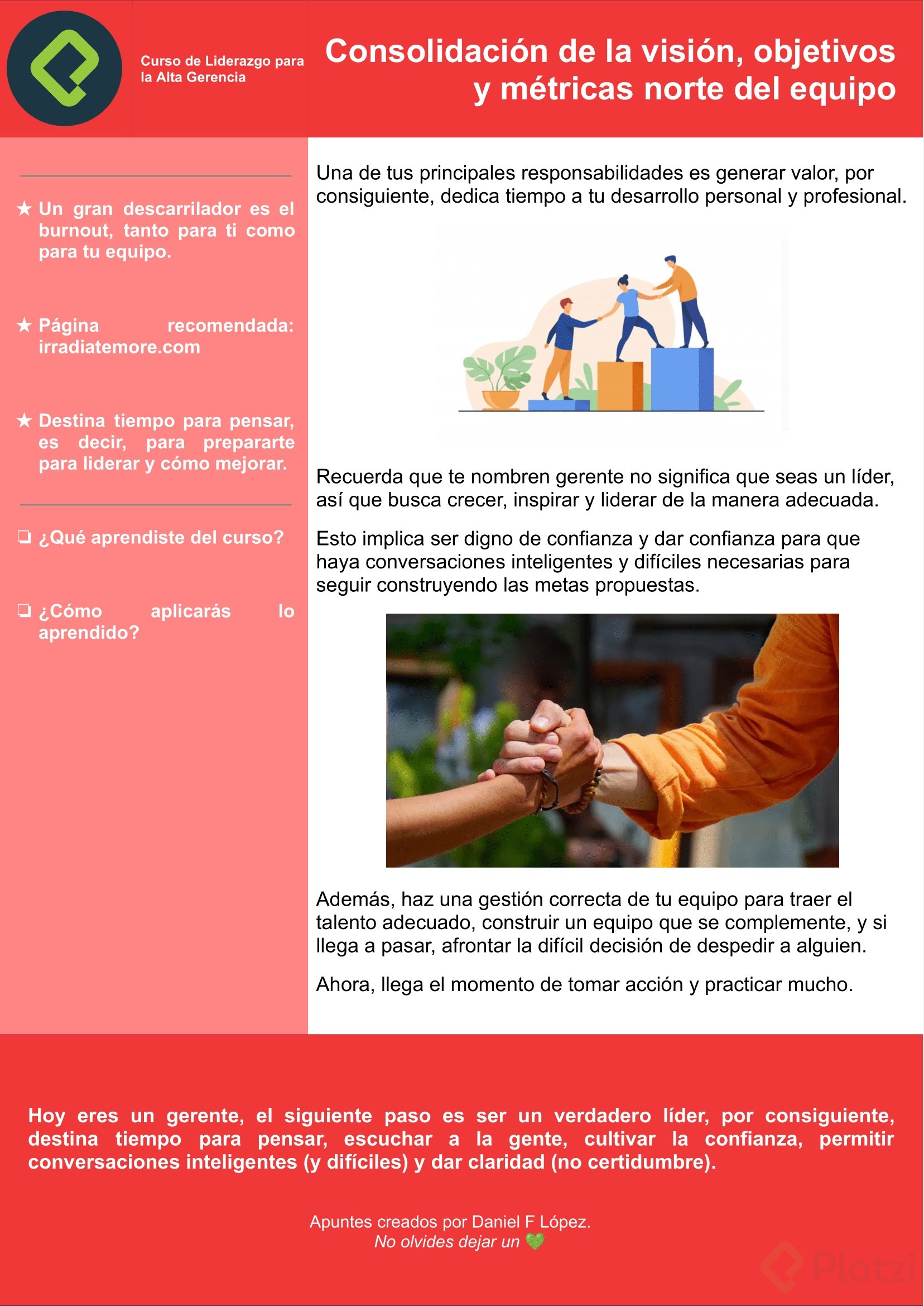 En tiempos de incertidumbre, lo que más necesitan las personas no es la certidumbre, sino la claridad. Tu rol es ser una fuente de claridad para tu equipo, comunicando con efectividad y empatía. Ahora es el momento de aplicar estos aprendizajes, seguir practicando y continuar en este emocionante viaje hacia convertirte en un líder excepcional.