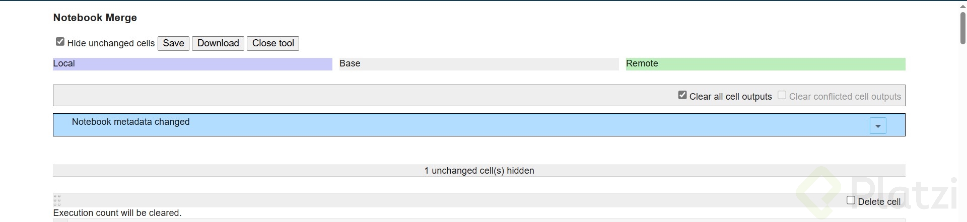 nbmerge <base_file.ipynb> <modified_file1.ipynb> <modified_file2.ipynb> --output <output_file.ipynb>Se recomienda crear siempre un archivo de salida para preservar los cambios y mantener su trabajo organizado.