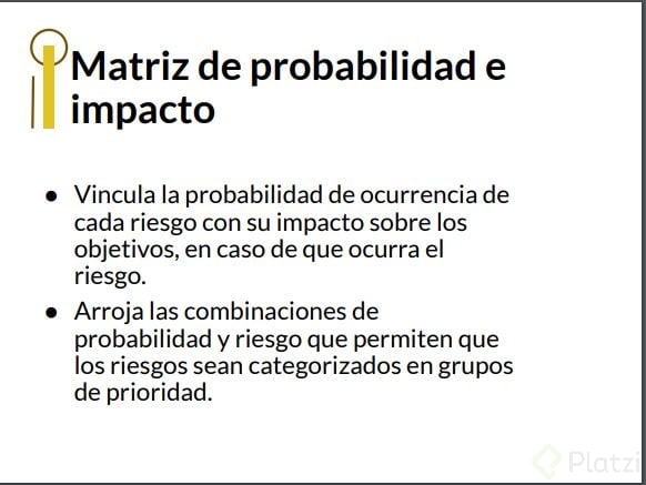 La matriz probabilidad-impacto es una herramienta esencial en la gestión de proyectos, que permite evaluar y priorizar riesgos potenciales. Esta técnica combina la probabilidad de ocurrencia de un riesgo y el impacto que tendría en el proyecto, multiplicando estos factores para obtener un valor que puede ayudar en la toma de decisiones. La matriz facilita a los gestores de proyectos identificar qué riesgos requieren más atención y cómo planificar las respuestas correspondientes.