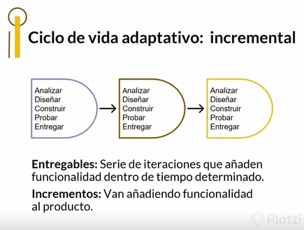 El ciclo de vida incremental se centra en agregar funcionalidades al producto mediante entregas pequeñas y continuas. Cada incremento aporta una nueva funcionalidad que, al final, compone el producto total: