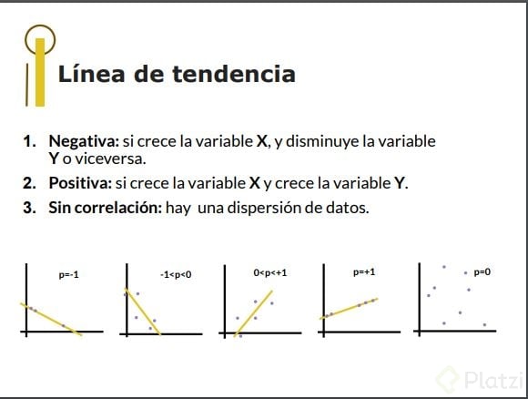 En el diagrama de dispersión, la línea de tendencia juega un papel crucial. Existen diferentes tipos de pendientes que esta línea puede adoptar: