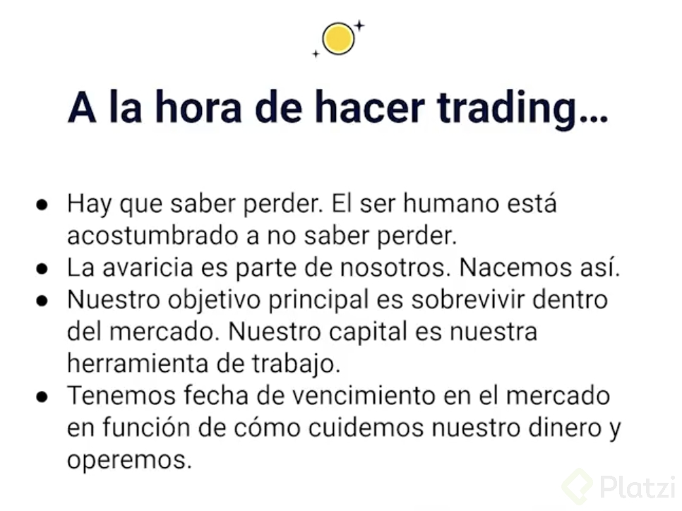 Cursos en Platzi para Psicología de trading: https://platzi.com/cursos/emociones-cripto/ https://platzi.com/cursos/manejo-ansiedad-terapify/ https://platzi.com/cursos/frustracion/