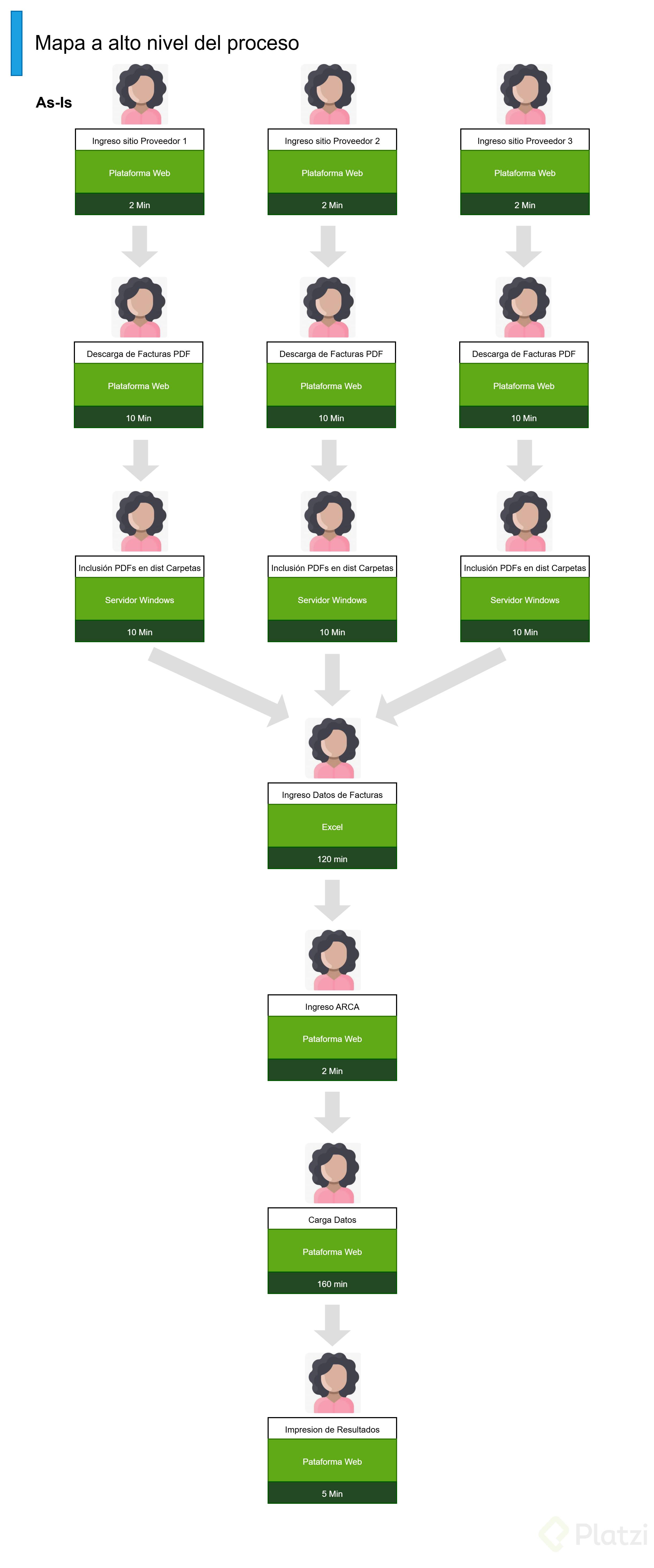 Estos componentes proporcionan una visión clara del proceso y permiten identificar áreas que podrían ser optimizadas, especialmente cuando se comparan los tiempos entre actividades manuales y automatizadas.
