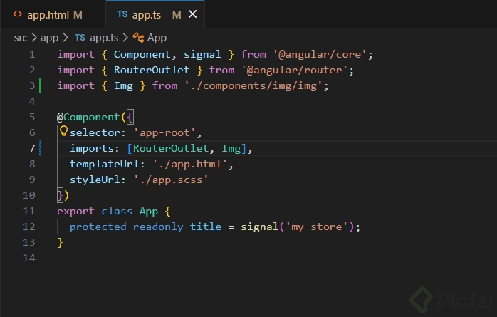 Angular también importará automáticamente el componente creado en el archivo app.module.ts para que automáticamente puedas utilizarlo en tu aplicación.