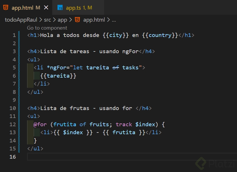 Creación de componentes y rutas en Angular para gestión de tareas