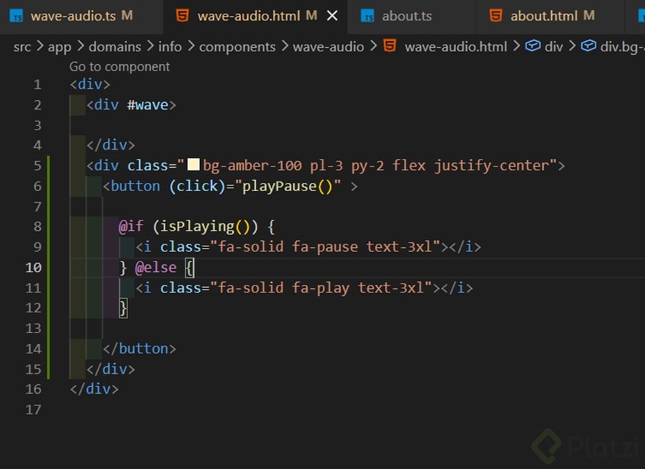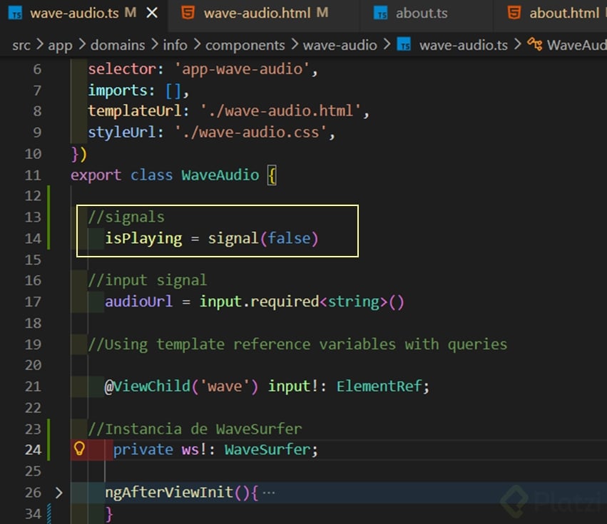 - Crear una referencia para el audio, como se haría con una instancia de WaveSurfer.