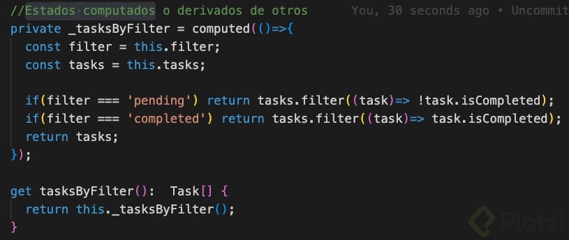 Creación del computed state: Implementar un estado computado que dependa del estado del filtro y de la lista de tareas.