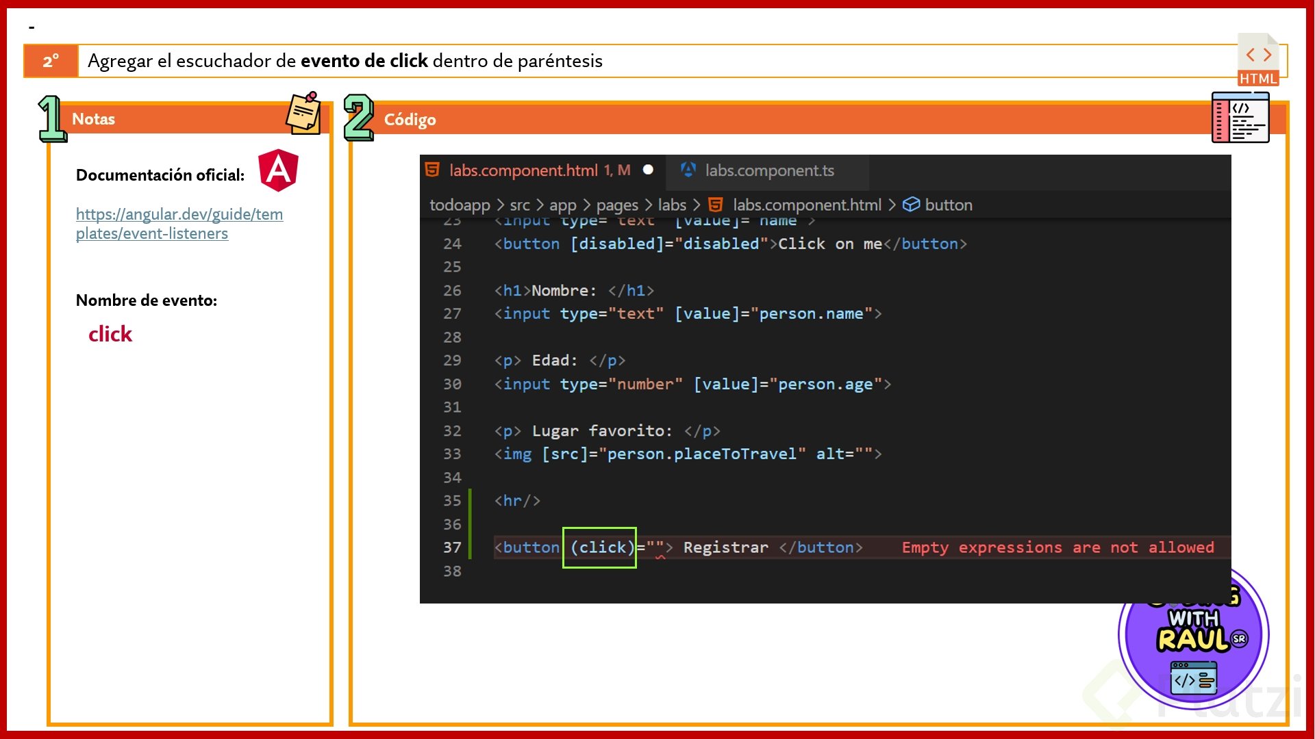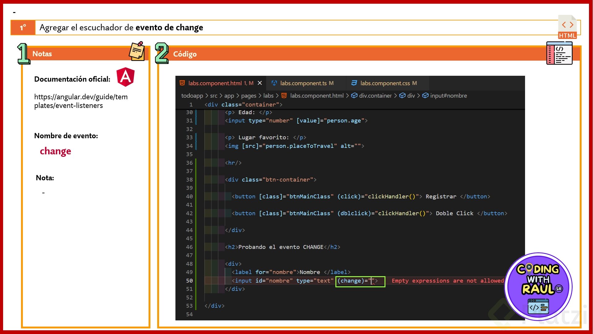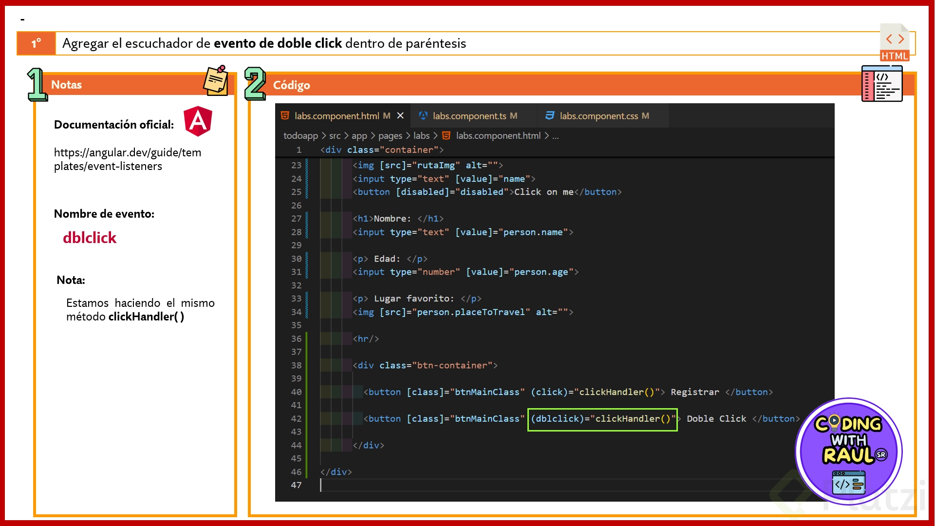 Eventos en Angular: click, doble click y cambio de input