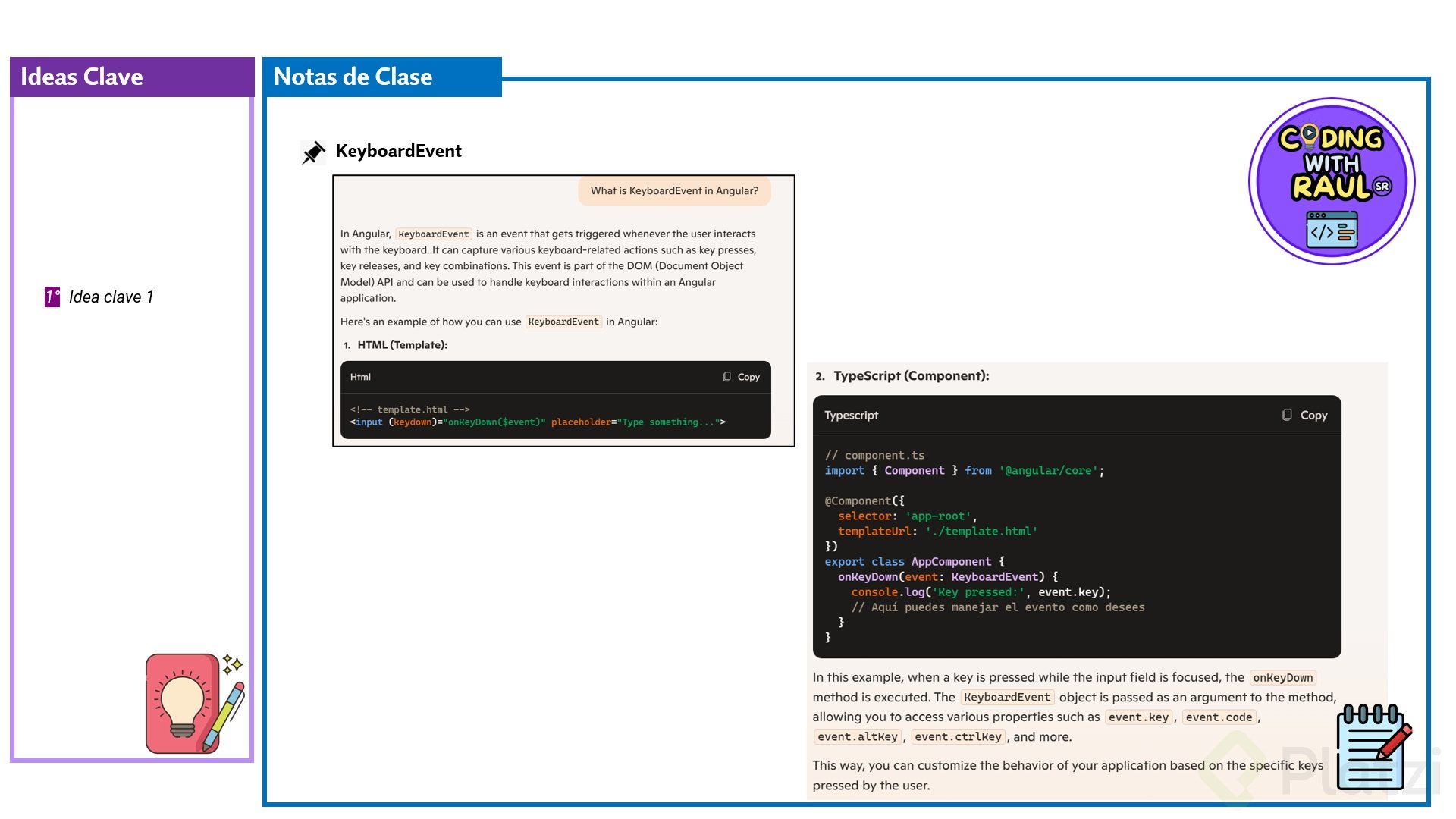 Los eventos de teclado son esenciales en la interacción de usuario con aplicaciones web, ya que nos permiten capturar acciones específicas cuando el usuario presiona teclas en su teclado. Estos eventos son particularmente útiles para mejorar la experiencia de usuario al proporcionar respuestas rápidas a sus acciones, como el autocompletado o la ejecución de comandos rápidos.