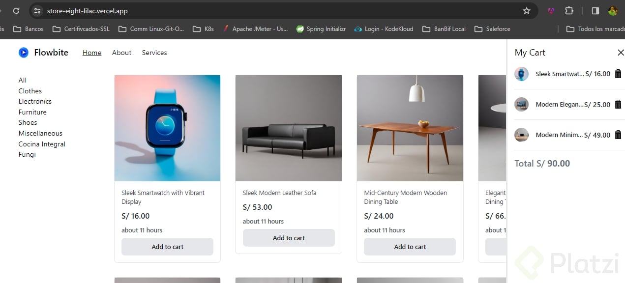 - Carrito reactivo: Observa cómo se calculan en tiempo real los precios en el carrito de compras.