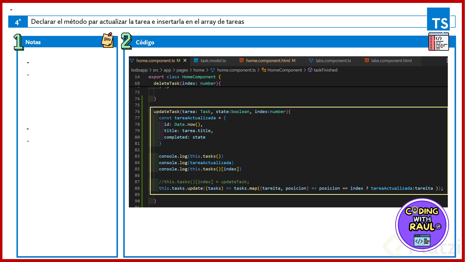 - Identificar la tarea a modificar: Localizar la posición de la tarea en el array.
