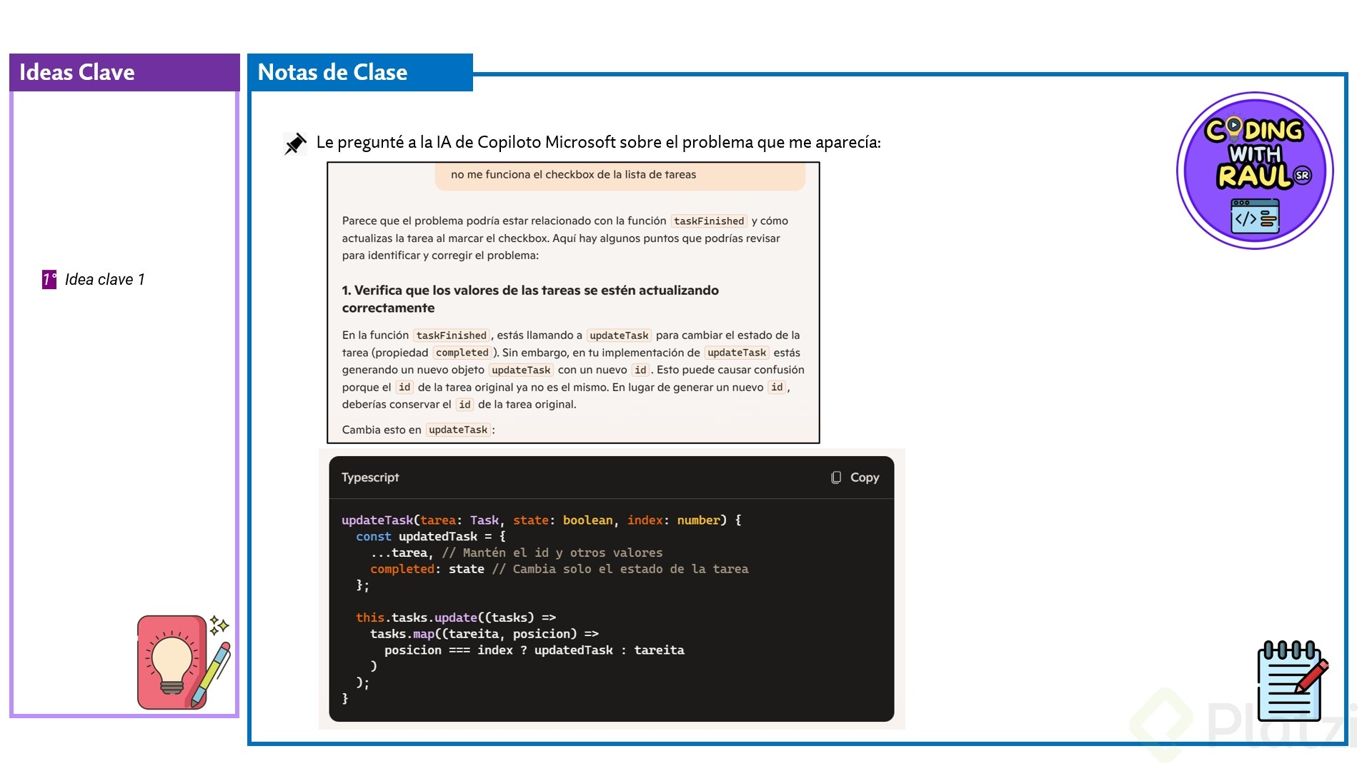 Actualizar tareas de manera eficiente es crucial en el desarrollo de aplicaciones en Angular. Este proceso no solo mejora la funcionalidad, sino que también ilustra la forma de trabajar con arrays de manera inmutable, siguiendo las buenas prácticas de Angular y utilizando técnicas modernas como las señales (signals).