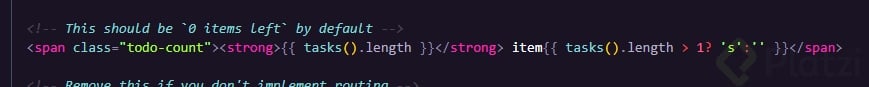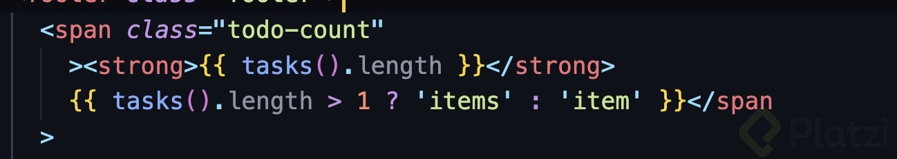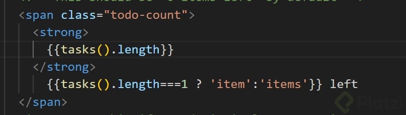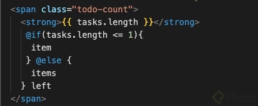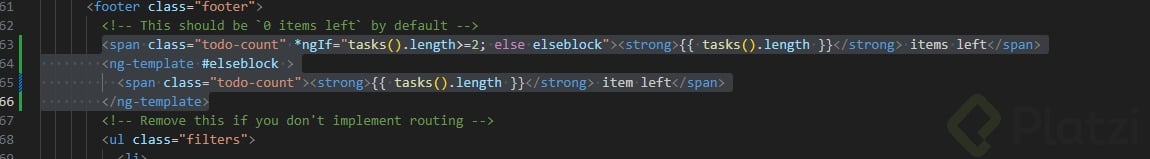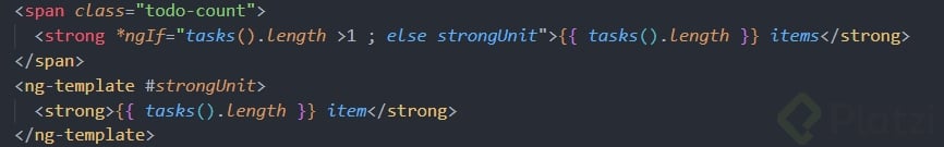 ngIfpara mostrar la forma singular si el tamaño de las tareas, es decir,tasks.length, es igual a 1. - Utiliza