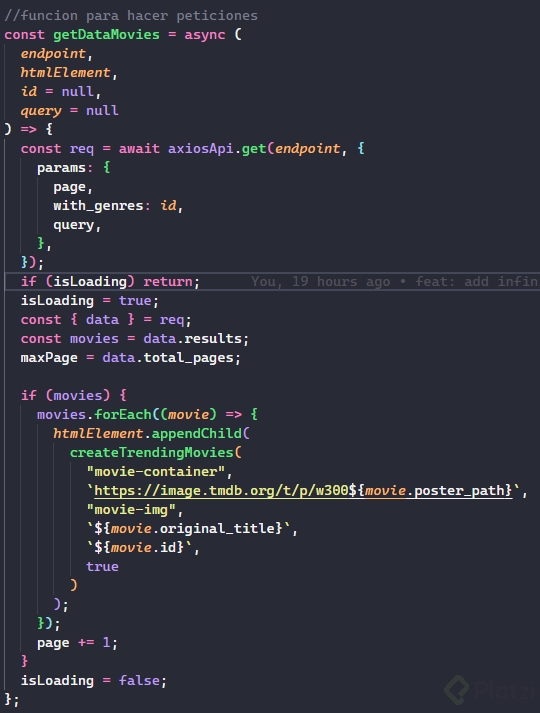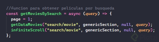 El próximo desafío es implementar esta lógica de paginación en otras funciones como Get Movies by Search o Get Movies by Category. Te instamos a que pruebes este reto, aunque este último utiliza parámetros que presentan un obstáculo adicional. No temas, aprender enfrentando estas problemáticas elevará tus habilidades como desarrollador.