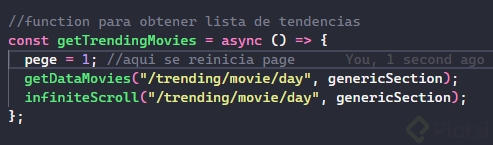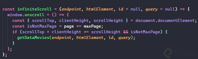 Para aplicar esta limitación, primero debemos obtener el número máximo de páginas desde nuestro primer llamado a la API y almacenarlo en una variable. Así evitamos que la aplicación intente seguir cargando después de alcanzar la última página permitida.