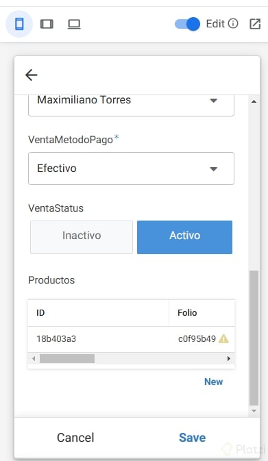 SELECTpara sumar los importes dentro de "Venta Detalle". - Guarda los cambios: Una vez que la fórmula esté lista, guarda para ver reflejado el total al instante dentro de la aplicación.