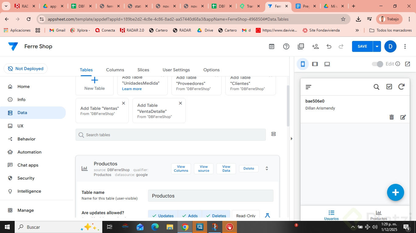 AppSheet recolecta tablas automáticamente y te permite manejarlas con facilidad: